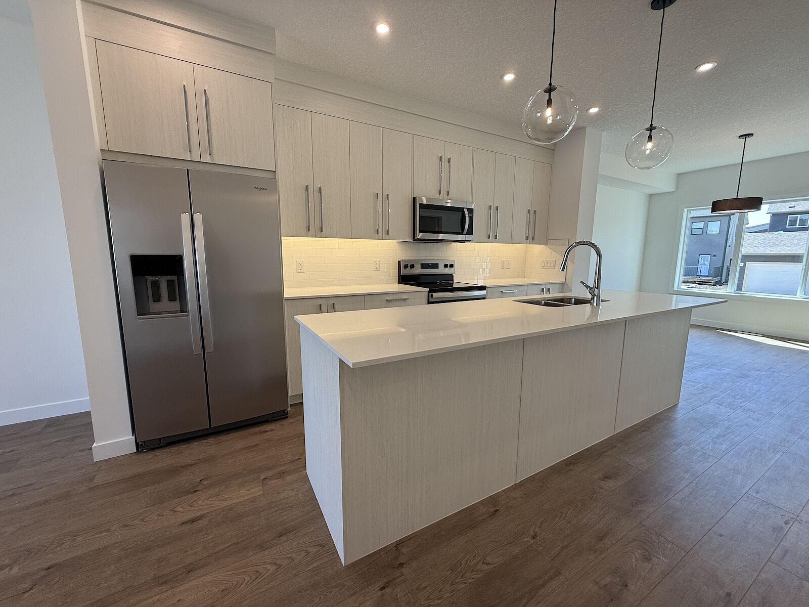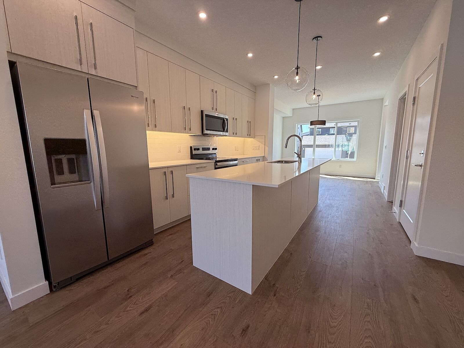 Step into this beautifully designed Truman-built 3 bedroom, 2 bathroom upper duplex, offering modern finishes and functional living in a bright, open-concept layout. The spacious kitchen features sleek cabinetry, quality appliances, and plenty of counter space, flowing seamlessly into the dining and living areas—perfect for entertaining or relaxing.