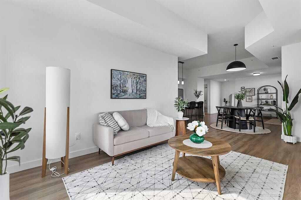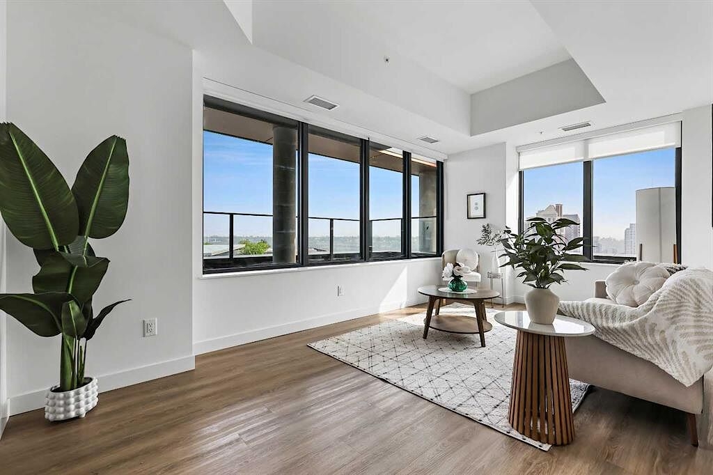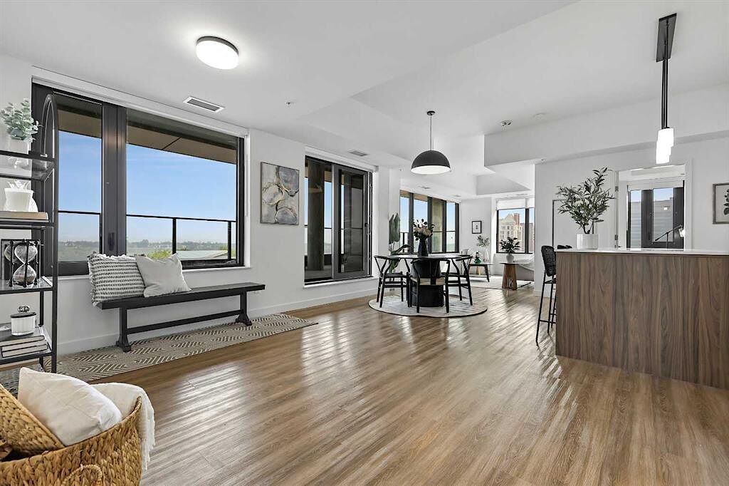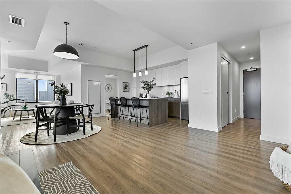 Showcasing unobstructed views of the Bow River, the iconic Peace Bridge, and the Rocky Mountains beyond, this executive residence offers refined urban living at one of downtown Calgary’s most prestigious addresses. Located in Eau Claire’s sought-after First & Park, this beautifully appointed 982 sq. ft. suite features 2 bedrooms, 2 bathrooms, en-suite laundry, and soaring 10-ft ceilings.