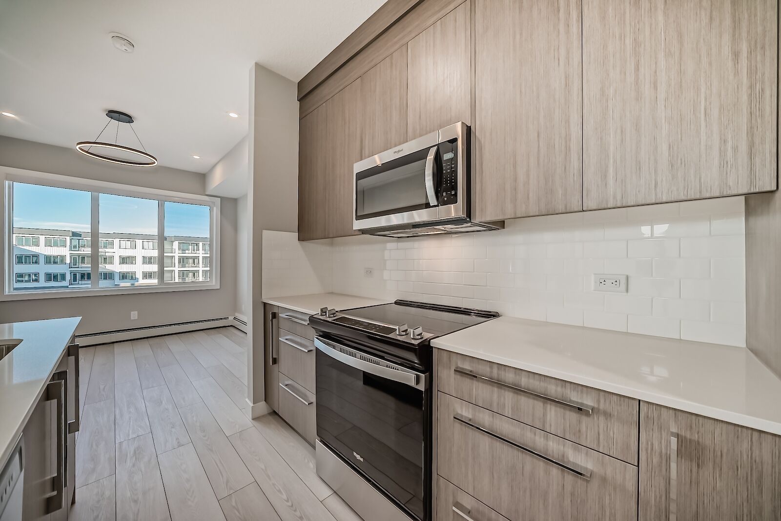 This unit features an open concept, living, dining and kitchen area, The appliances are high-end and all stainless steel and an island to entertain.