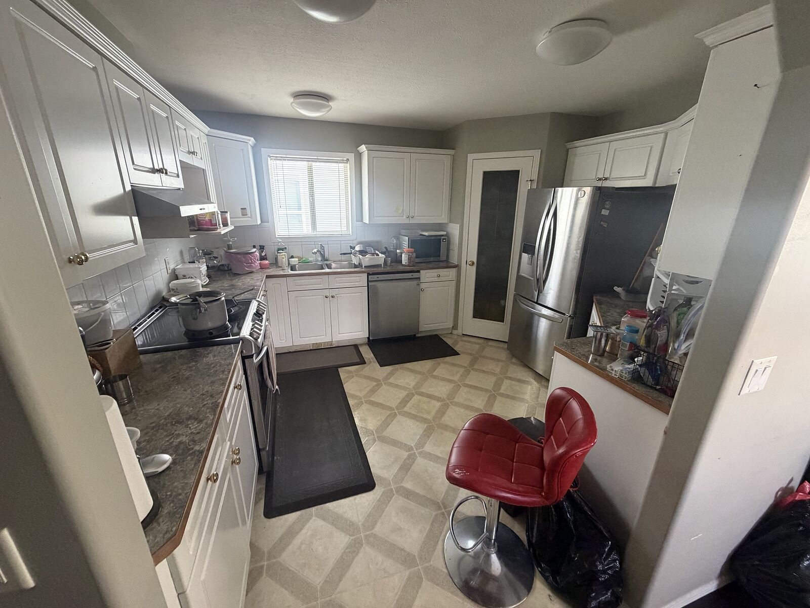 The open-concept layout is filled with natural light thanks to the elevated bi-level design, creating a warm and inviting space perfect for families or professionals. The primary bedroom includes a generous walk-in closet, while two additional bedrooms and a second full bathroom provide flexibility for kids, guests, or a home office.